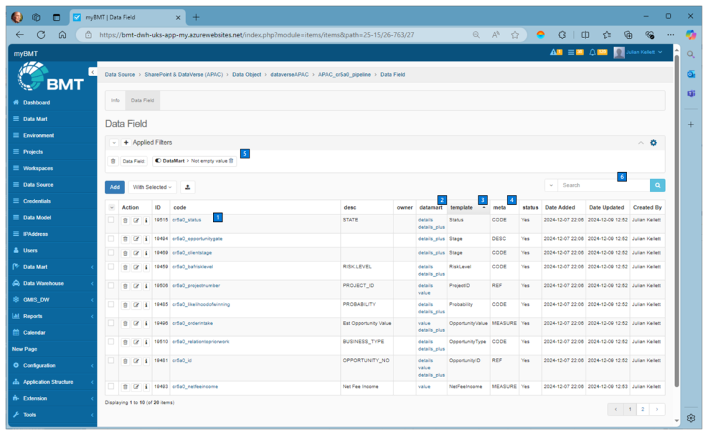 2️⃣ The target DataMart for the field (e.g., BusOpp.Details, BusOpp.Details_Plus, BusOpp.Value).