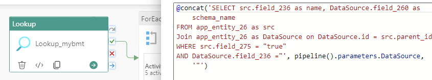 AND DataSource.field_236 ="', pipeline().parameters.DataSource,'"')